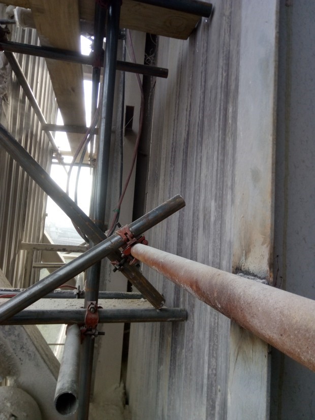 西昌藍(lán)鼎的半干法脫硫系統(tǒng)已經(jīng)穩(wěn)定運(yùn)行了6年,對(duì)西昌市的藍(lán)天白云、綠水青山作出了重要貢獻(xiàn)。但同時(shí),隨著設(shè)備使用年限的增加,設(shè)備腐蝕問(wèn)題也越來(lái)越嚴(yán)重,時(shí)刻危及著系統(tǒng)的安全穩(wěn)定運(yùn)行。其中F1斗提、F2斗提、A1斗提腐蝕最為嚴(yán)重,8毫米厚的斗提箱體,鋼板已經(jīng)薄如紙片。如果采用整體更換斗提箱體的方法,將會(huì)影響設(shè)備的正常脫硫,面臨超標(biāo)排放的環(huán)保風(fēng)險(xiǎn),而且成本也高。面對(duì)問(wèn)題,檢修班全體共同想辦法,決定采用在斗提外側(cè)滿(mǎn)焊一圈8毫米厚的鋼板,這樣既不影響設(shè)備的正常運(yùn)行也能節(jié)約檢修成本。F1斗提、F2斗提箱體周?chē)摪,在大家的共同努力下,高效安全的焊接完成了?/span>
