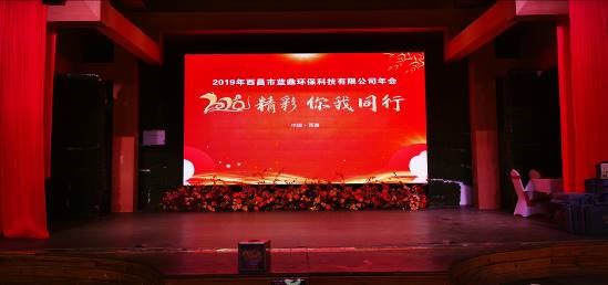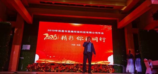音樂(lè)漸漸停止,屏幕悄然變化,伴隨著激昂的音樂(lè),主持人盛裝登場(chǎng),在表達(dá)了對(duì)在場(chǎng)嘉賓的歡迎以及對(duì)身處生產(chǎn)一線無(wú)法到來(lái)人員的感謝后,西昌藍(lán)鼎執(zhí)行總經(jīng)理李富勇走上舞臺(tái),為本次年會(huì)做開幕詞,總結(jié)了過(guò)去一年的種種,表達(dá)了對(duì)公司全體成員一年努力的肯定,闡述了未來(lái)一年濕法脫硫脫硝項(xiàng)目建成落地所要面對(duì)的各種挑戰(zhàn)。隨后是西昌藍(lán)鼎生產(chǎn)部部長(zhǎng)孫小剛上臺(tái),為大家宣布2019年度藍(lán)鼎“十大事件”。隨后本次年會(huì)文藝表演正式開始。