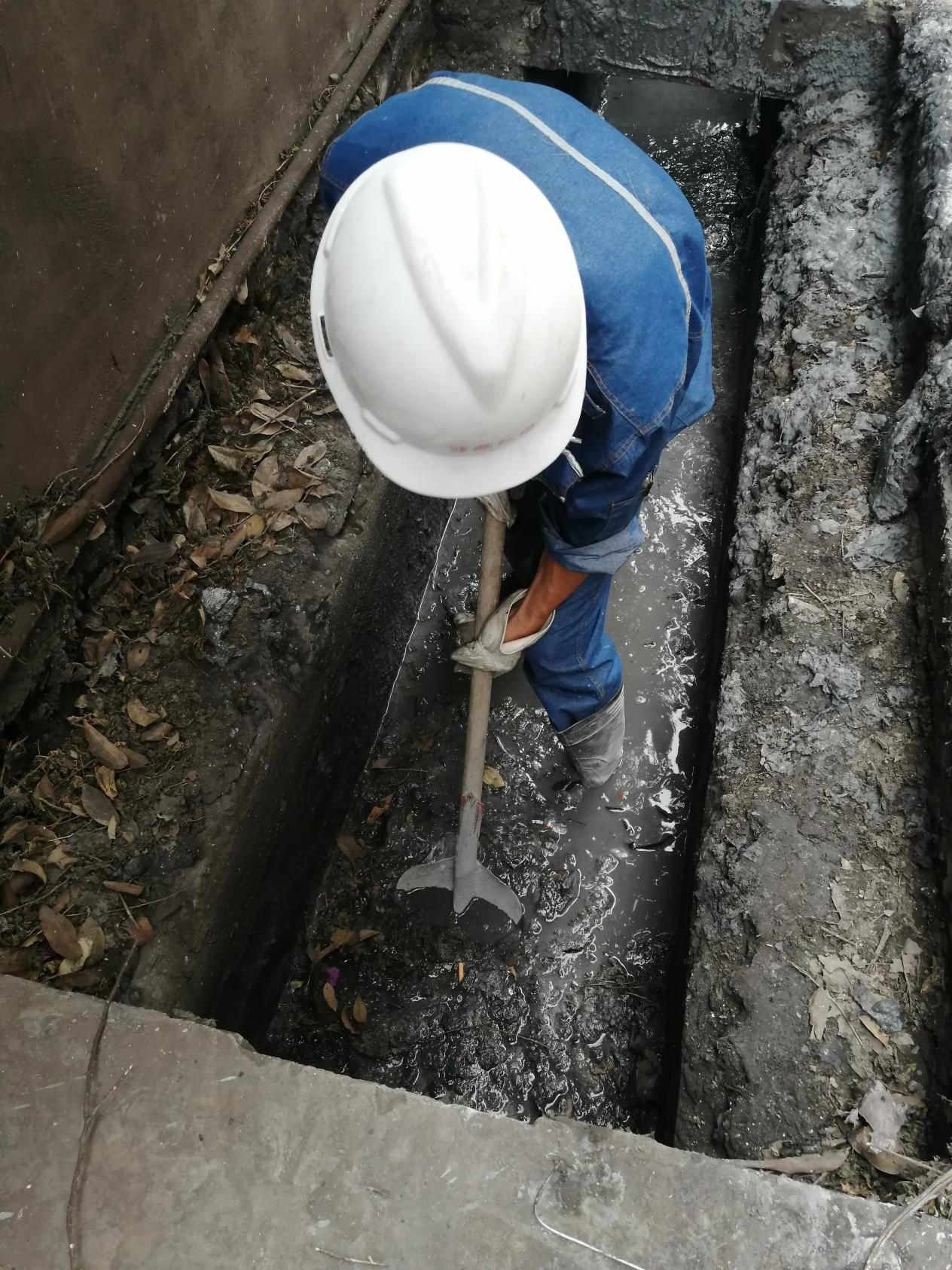下水道共計60米長,4個生產班組分別清理1段。雖然下水道又臟又臭,但是大家不怕臟不怕累,通過共同努力,連續(xù)清理了4天,終于將下水道清理干凈,確保下水道能正常排水,在雨季來臨前,保證了人員和設備的安全。