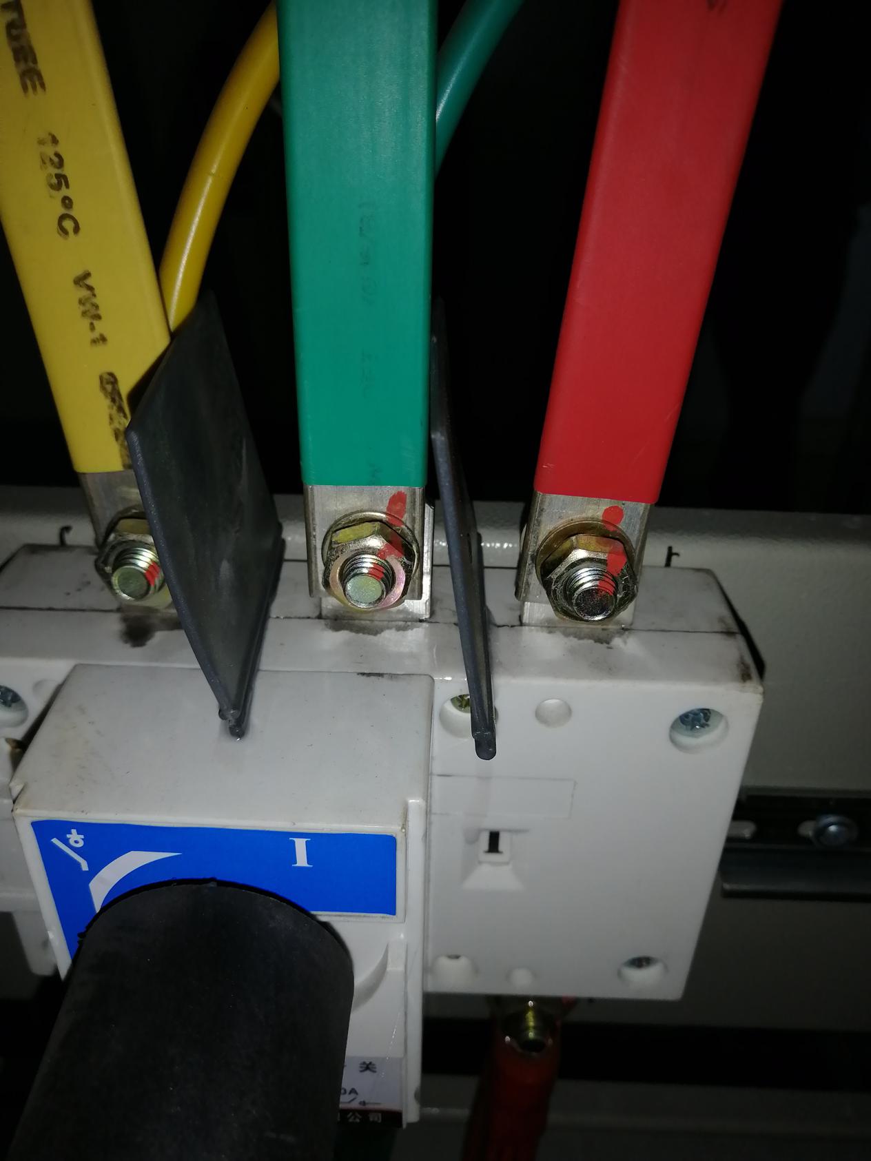 西藍鼎電儀人員在對脫硫脫硝系統(tǒng)低壓電氣設(shè)備檢修時,發(fā)現(xiàn)隔離開關(guān)表面積灰嚴重,因積灰具有較強的導(dǎo)電性,存在安全風(fēng)險。現(xiàn)用隔離開關(guān)為普通型,不具備防塵功能,且在檢修過程中發(fā)現(xiàn)施工單位私自將原本設(shè)計的內(nèi)循環(huán)排風(fēng)系統(tǒng)改為外循環(huán)排風(fēng)系統(tǒng),造成了大量的粉塵進入配電室。面對積灰問題,檢修班原計劃將18臺隔離開關(guān)全部更換成防塵型隔離開關(guān),但經(jīng)測算發(fā)現(xiàn)成本偏高,且檢修周期長。面對難題檢修班經(jīng)過討論后決定在兩相電源之間粘一片膠皮擋板,防止因積灰造成相間短路情況的發(fā)生。