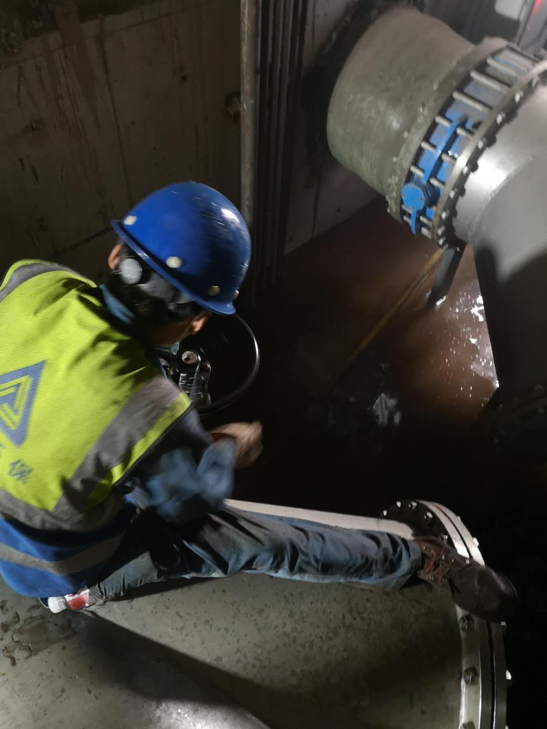 1#水洗泵正常運(yùn)行后,搶修隊(duì)伍緊接著處理2#、3#水洗泵軟連接處漏水,大家鞋里灌滿了水,衣服也全濕透了,但是不敢怠慢,都在專注忙著工作,確保設(shè)備在最快的時(shí)間恢復(fù)正常運(yùn)行。
