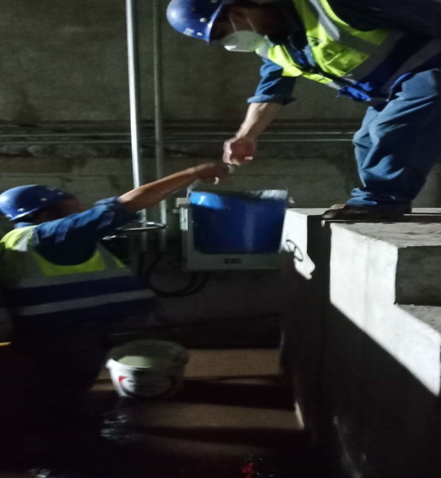 在搶修隊(duì)伍的努力下,終于結(jié)束了這場(chǎng)“槍淋彈雨”的“戰(zhàn)斗”。但是水洗泵房仍然有很多積水,大家又?jǐn)]起袖子清理泵房積水。由于水洗泵房沒(méi)有排水道且處于低地,只能人工用桶運(yùn)輸。