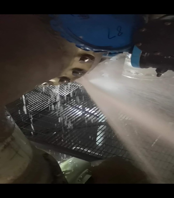 6月9日15點(diǎn),山西藍(lán)鼎360脫硫脫硝水洗泵突發(fā)故障,在備用泵無(wú)法正常工作情況下,生產(chǎn)、檢修和電儀齊心協(xié)力在水中作業(yè),緊急處理清水池2#、3#水洗泵閥門漏水,清理1#水洗泵濾網(wǎng)雜物,經(jīng)過(guò)近3小時(shí)的努力,設(shè)備恢復(fù)正常運(yùn)行。