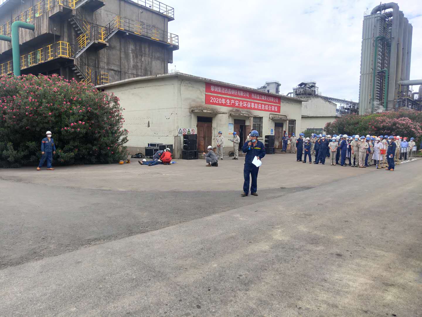 安全是企業(yè)的生命線,為進一步深入貫徹黨中央、國務院關于安全生產的重大決策部署,全面落實企業(yè)安全生產主體責任,做好危險化工產品安全生產保障工作,防患于未然。7月1日西昌藍鼎執(zhí)行總經理李富勇,生產部副部長王建勇及安全員陸波,帶隊參加西昌鋼釩公司、西昌盤江煤焦化公司結合安全生產月“防風險、除隱患、遏事故”的主題,聯(lián)合組織開展產安全環(huán)保事故的綜合應急演練,西昌鋼釩還邀請涼山州應急管理局、西昌市應急管理局、西昌市環(huán)保局、西昌市經信發(fā)改局和釩鈦產業(yè)園區(qū)相關領導及主管人員現(xiàn)場觀摩指導,此次演練共有200余人參加。