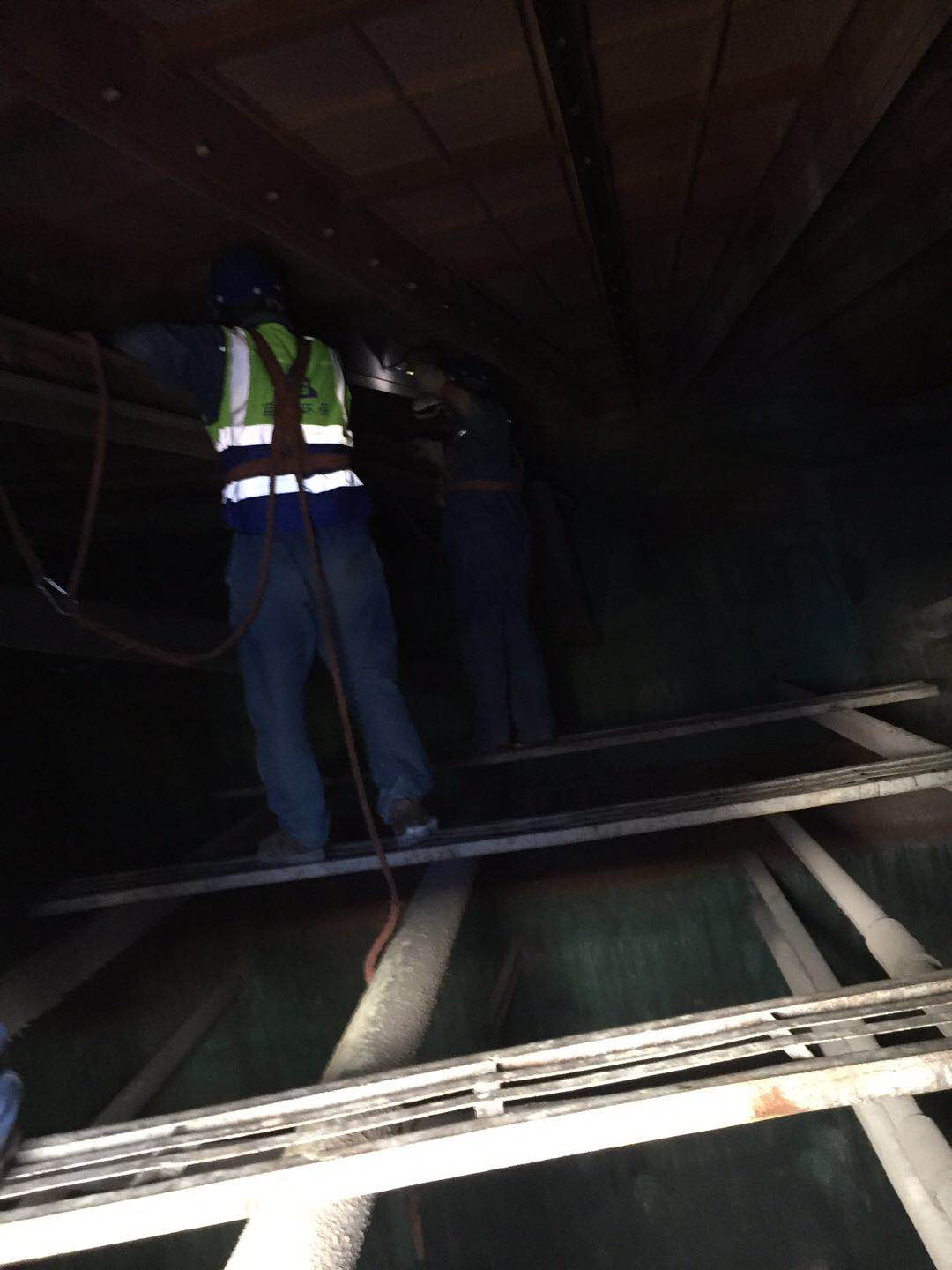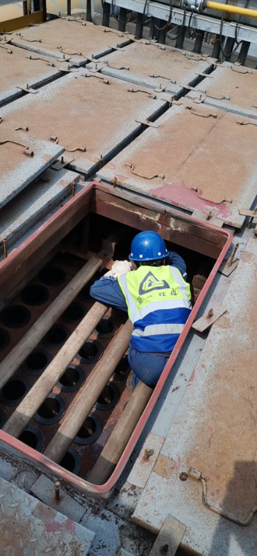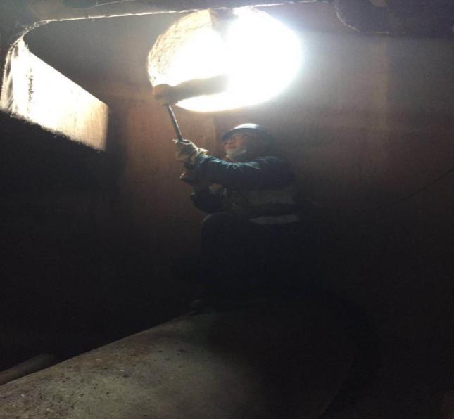 檢修人員清理熱風(fēng)爐內(nèi)部積物緊固GGH底部密封擋板