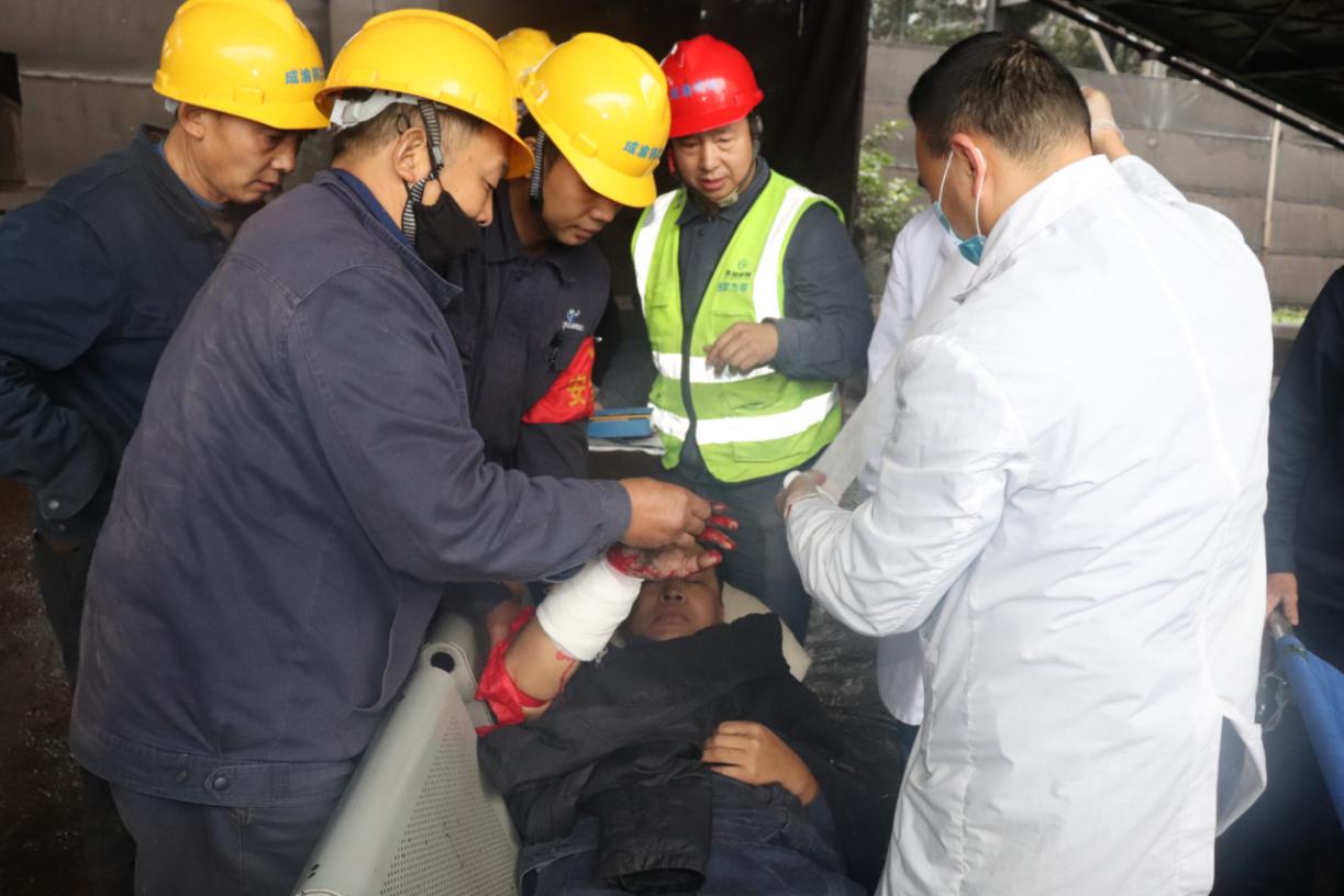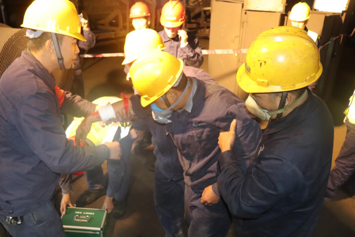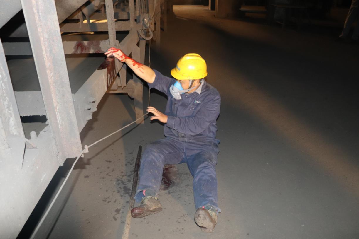 在廠長(zhǎng)助理王武鼎宣布燒結(jié)廠皮帶絞傷事故應(yīng)急演練開(kāi)始后,全體人員按照演練計(jì)劃迅速開(kāi)展相關(guān)部署,現(xiàn)場(chǎng)模擬皮帶絞傷事故。