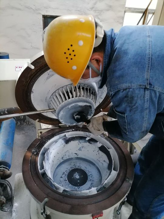 9:30干熄脫硫系統(tǒng)停機,機修人員首先檢查了風(fēng)機軸承潤滑油,發(fā)現(xiàn)油脂有變質(zhì)現(xiàn)象,立刻更換了潤滑油。檢查完風(fēng)機后又檢查維修意大利進口磨機等。電儀人員對配電室的隔離開關(guān)加裝防塵擋板,檢查緊固所有接線端子,清潔電氣設(shè)備的衛(wèi)生等。通過大家的共同努力,13:30圓滿完成大修工作,14:00干熄焦脫硫系統(tǒng)開機,運行正常。