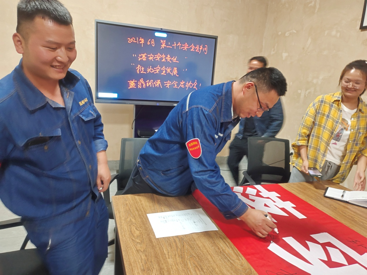 第三部分:各施工單位及公司管理人員簽下軍令狀,即在“落實(shí)安全責(zé)任 推動(dòng)安全發(fā)展”橫幅上簽字,承諾盡職盡責(zé)做好安全生產(chǎn)工作。
