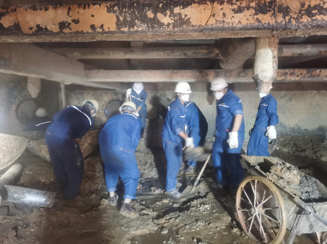 生產(chǎn)班組人員清理吸收塔沉淀物清理