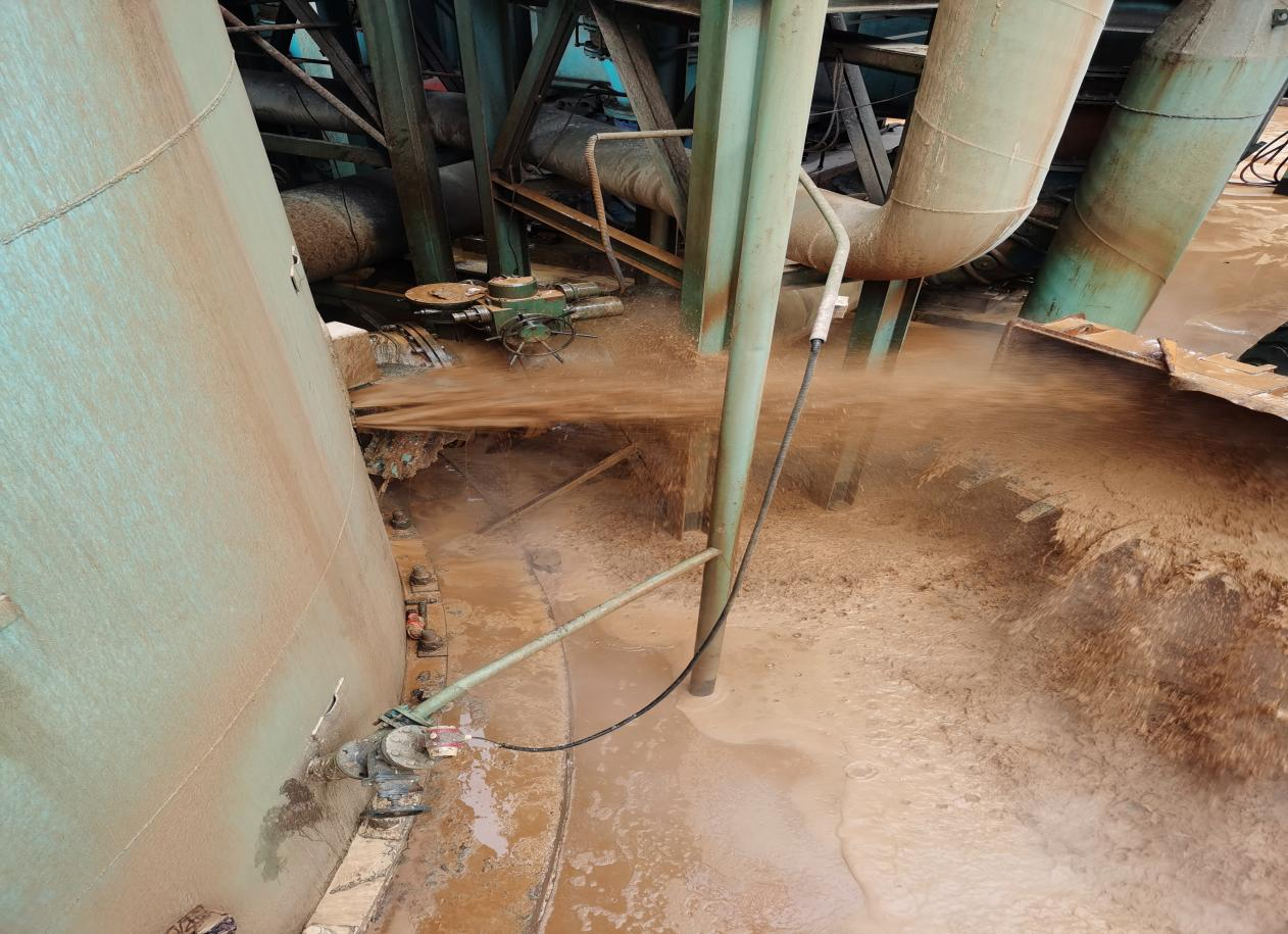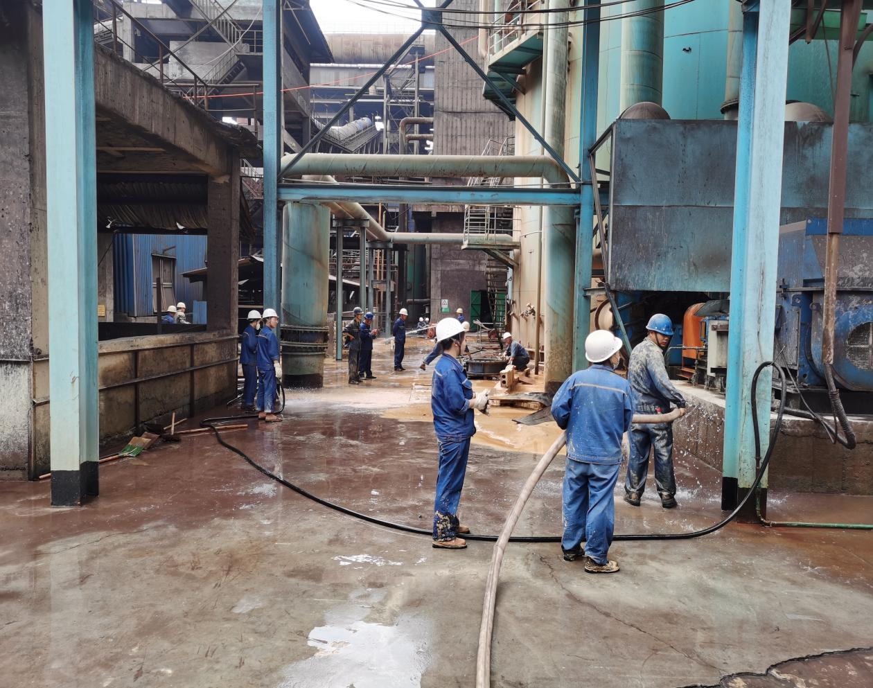 漿液泄露堵住后,蘭華春組織當(dāng)班人員對(duì)地面沉淀的石膏和殘留的漿液進(jìn)行沖洗,很多人在本次事故處理中衣服全部打濕。