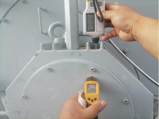 為了確保9月30日增壓風(fēng)機(jī)電機(jī)能夠順利試運(yùn)行,西昌藍(lán)鼎生產(chǎn)部提前組織生產(chǎn)檢修技術(shù)骨干研究試車方案,做到心中有數(shù)爭取一次成功。9月30日上午8:00西昌藍(lán)鼎副總經(jīng)理孫小剛到球團(tuán)施工現(xiàn)場組織試運(yùn)行增壓風(fēng)機(jī)電機(jī),機(jī)修人員仔細(xì)檢查電機(jī)的油路管道、電氣人員測量了電機(jī)絕緣電阻、操作人員清理電機(jī)平臺施工雜物。各項(xiàng)檢查工作有序開展。在準(zhǔn)備開機(jī)前送電時(shí),發(fā)現(xiàn)高壓隔離開關(guān)無法合閘,在高壓隔離開關(guān)的廠家不在現(xiàn)場的情況下,西昌藍(lán)鼎電儀人員根據(jù)檢修經(jīng)驗(yàn)快速的將高壓隔離開關(guān)修復(fù)。