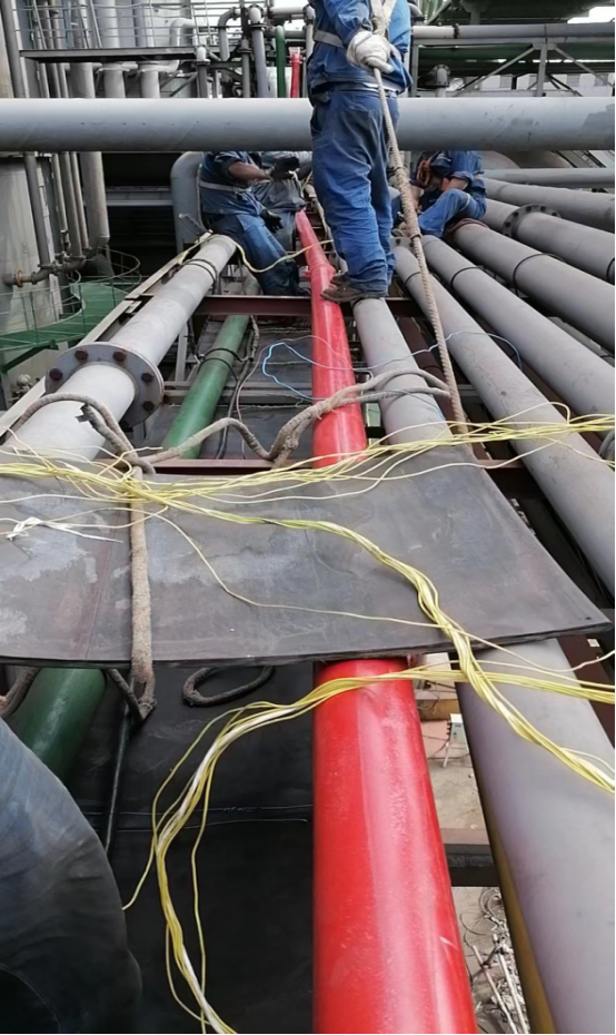 為了確保固定膠皮的線不生銹、不腐蝕,檢修班創(chuàng)新采用了耐腐蝕的塑包線。從6月開始,在檢修班的齊心協(xié)力下,截止12月20日完成了長(zhǎng)達(dá)1000多米的膠皮鋪設(shè)工作。