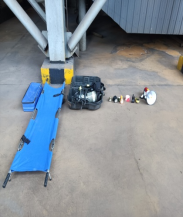 演練器材準(zhǔn)備救援隊員穿戴救援器材受傷人員轉(zhuǎn)移至安全場所進行人工呼吸。
