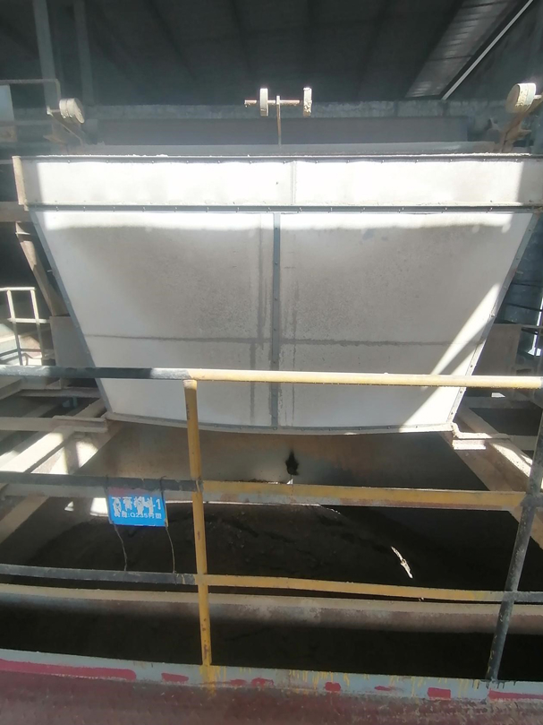 西昌藍(lán)鼎脫水后的石膏直接由脫水機(jī)皮帶輸送到石膏料倉(cāng),中控員通過(guò)攝像頭觀察石膏料倉(cāng)情況,發(fā)現(xiàn)堆滿后手動(dòng)停止脫水機(jī)皮帶。人工操作可能會(huì)出現(xiàn)石膏料倉(cāng)滿后未及時(shí)停機(jī)的情況,造成脫水機(jī)濾布摩擦損壞,影響生產(chǎn)。