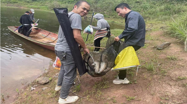 到達(dá)目的后,小伙伴們迅速開始準(zhǔn)備工作,一字排開、上魚餌、調(diào)魚漂、甩魚竿,快速完成一連串動(dòng)作。10:21開始上魚,小伙伴們將一條條魚收入網(wǎng)中,盡情享受垂釣帶來的樂趣;16:00結(jié)束釣魚活動(dòng),釣鰱鳙大頭魚約21斤,晚上伙伴們?cè)谒奚衢_展釣魚烹飪,以美食結(jié)束充實(shí)的一天。