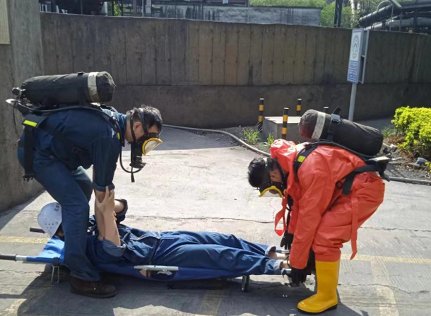 在演練過程中,應(yīng)急隊伍成員各司其職,有序展開救援行動。救援人員迅速穿戴好防護裝備,進入事故區(qū)域?qū)χ卸締T工進行緊急救援,并將其送往醫(yī)院進一步治療。同時,檢修人員也迅速對泄漏點進行排查和修復(fù),防止事故進一步擴大。