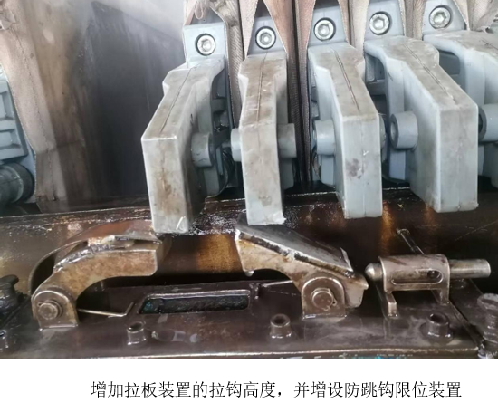 近日,西昌藍(lán)鼎二期壓濾機因新舊壓板存在約15毫米的高度差,導(dǎo)致自動拉板裝置無法正常運作,操作人員不得不頻繁手動干預(yù),勞動強度顯著增加。面對這一問題,檢修班長提出通過提升拉鉤高度并增設(shè)防跳鉤限位裝置的解決方案,使拉鉤能夠靈活適應(yīng)不同高度的壓板。該方案經(jīng)生產(chǎn)部綜合評估,被認(rèn)定為切實可行。